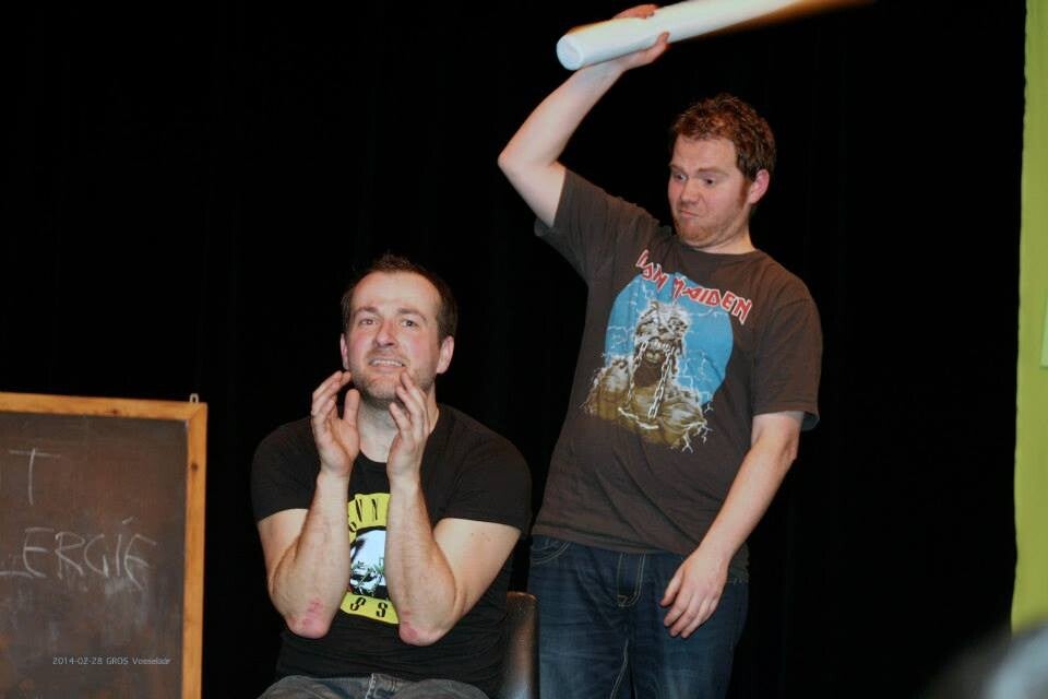 Wout, Tom en Manu spelen ieder optreden weer nieuwe sketches met suggesties uit het publiek.
